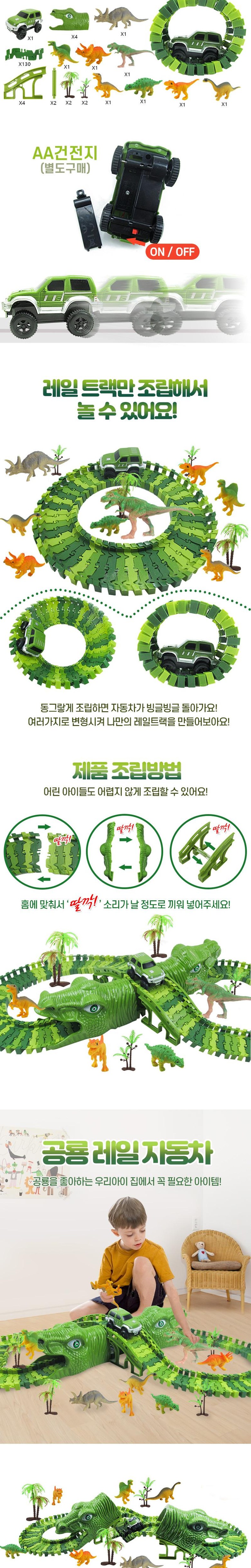 그릿(Grit) DIY 공룡 레일 트랙 조립 자동차 장난감 레일카 미니카 작동완구 기차놀이, 153pcs
