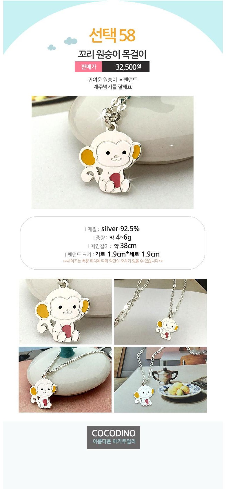 꼬리원숭이 목걸이 실버미아방지목걸이, 실버