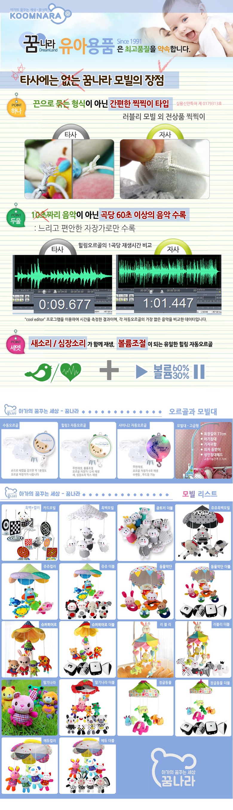 | 취급방법 및 취급시 주의사항, 안전표시 | 세탁시 링파손 주의. 세탁시 삑삑이의 물을 완전히 뺀후 말림. 흑백모빌 세탁시 세탁설명서 참조 |