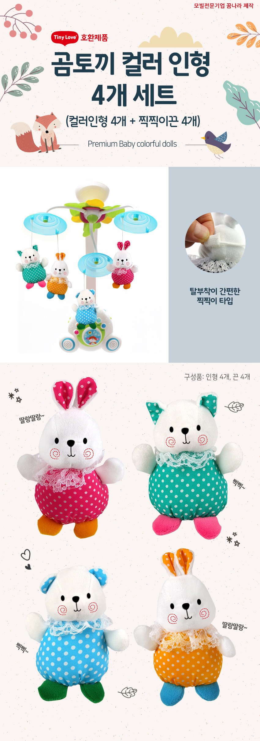 꿈나라 타이니러브 호환 곰토끼 컬러 모빌인형 4종 + 찍찍이끈 4p 세트, 혼합색상