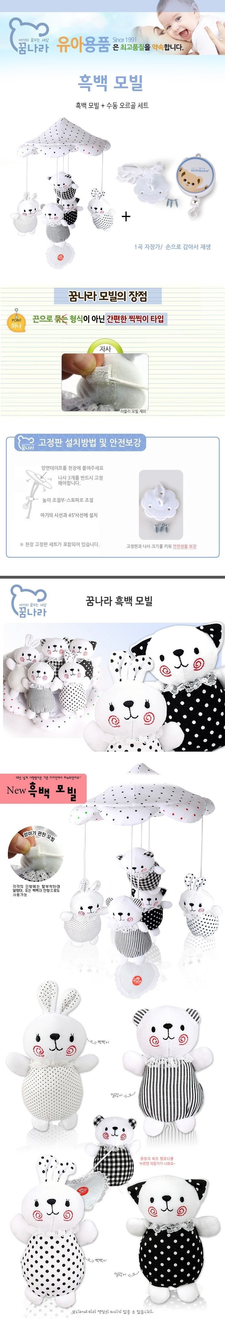 꿈나라 흑백 모빌 + 수동 오르골 세트, 혼합 색상