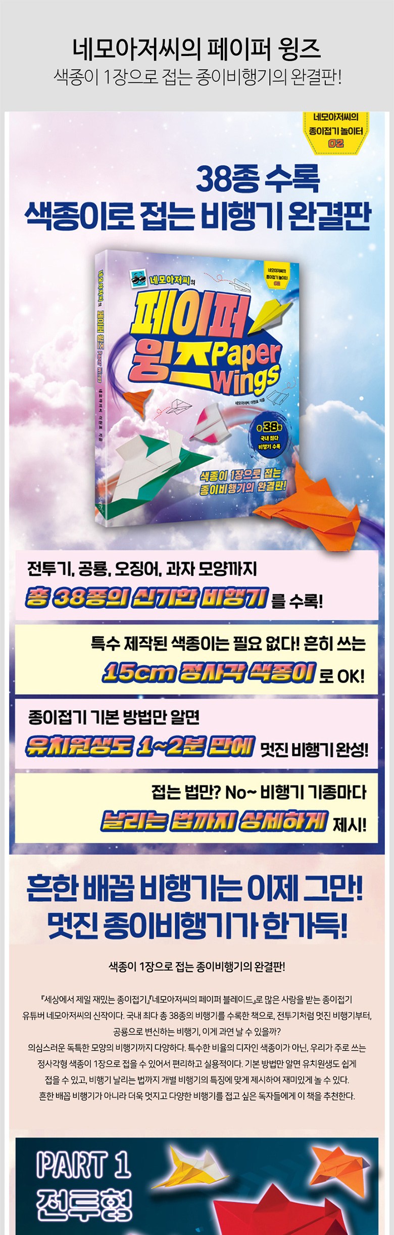 | 목차 또는 책소개(아동용 학습 교재의 경우 사용연령을 포함) | 네모아저씨의 페이퍼 윙즈 + 페이퍼 블레이드 + 세상에서 제일 재밌는 종이접기 |