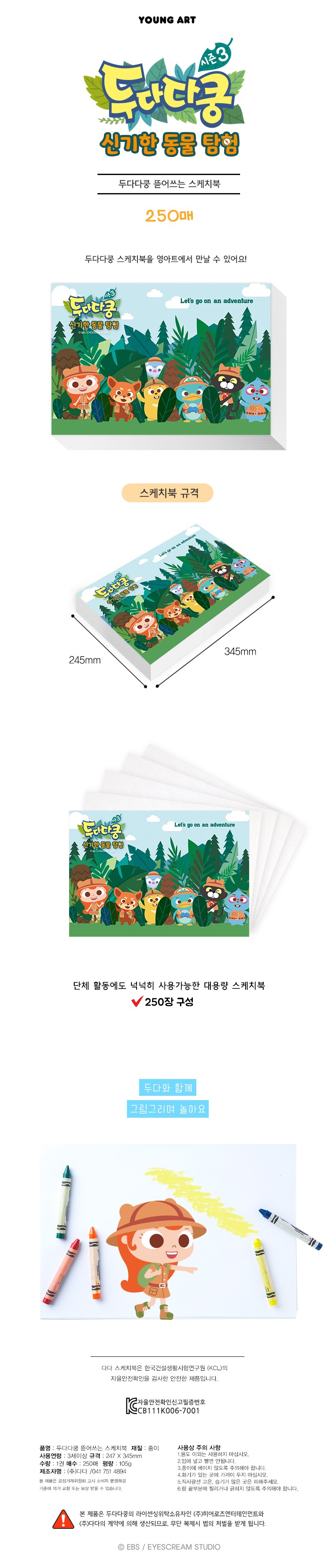 | 품명 및 모델명 | 다다 두다다쿵 뜯어쓰는스케치북 |