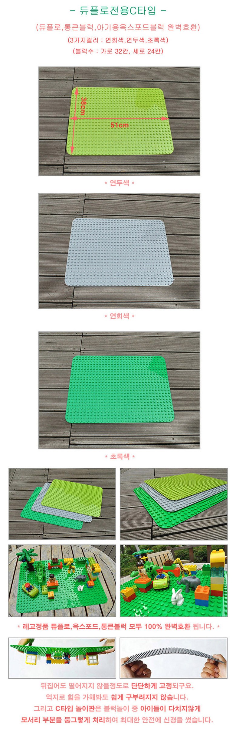 [더뻔뻔] 큰블럭용 블록판모음, 연두색(듀플로놀이판51cm*38cm)