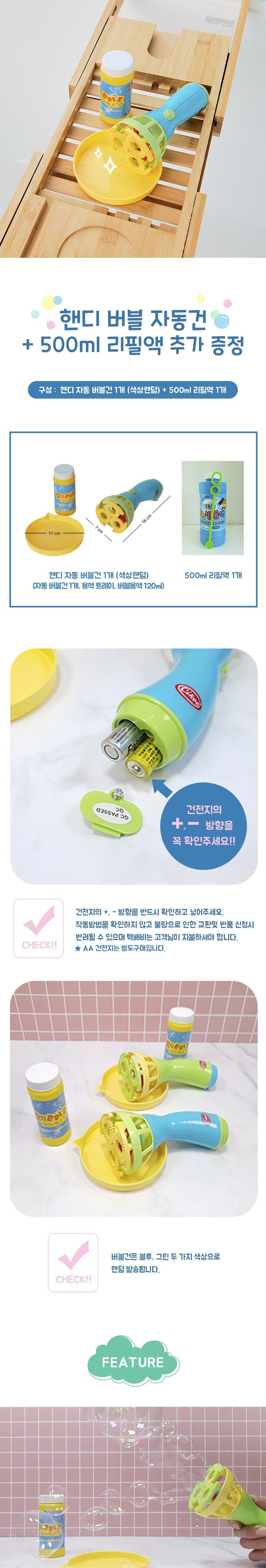 따블리에 왕방울 자동 버블건 (+ 500ml 리필액) 비눗방울 버블건 비눗 방울 놀이 목욕 놀이 장난감, 핸디 자동 버블건 + 500ml 리필액