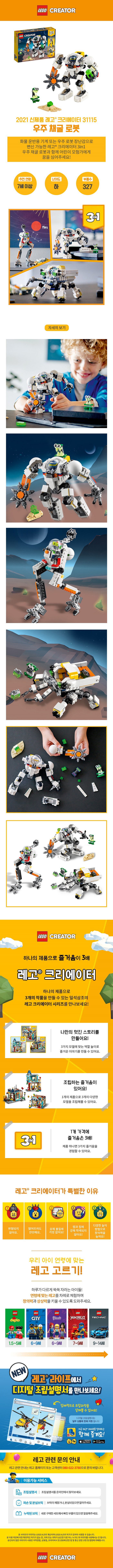 | 품명 및 모델명 | 레고 크리에이터 31115 우주 채굴 로봇 |