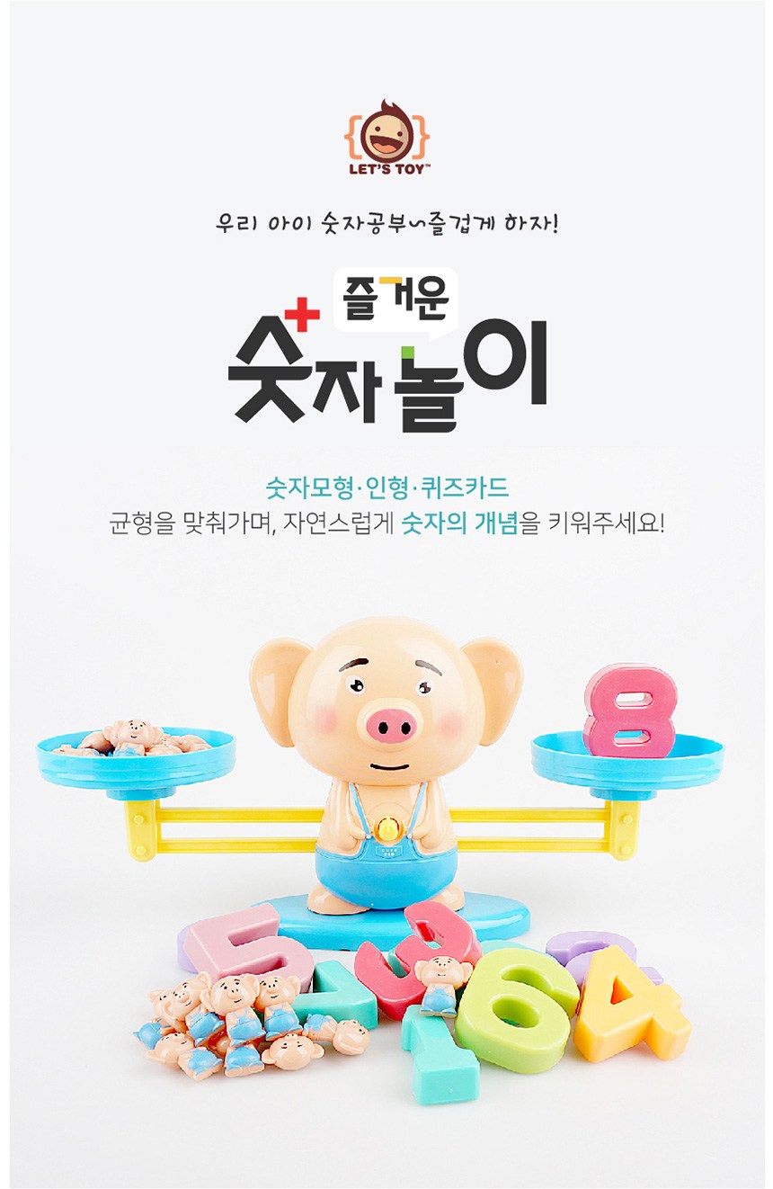 레츠토이 즐거운 숫자 저울 놀이 유아 수학 교구 장난감 피그, 1개