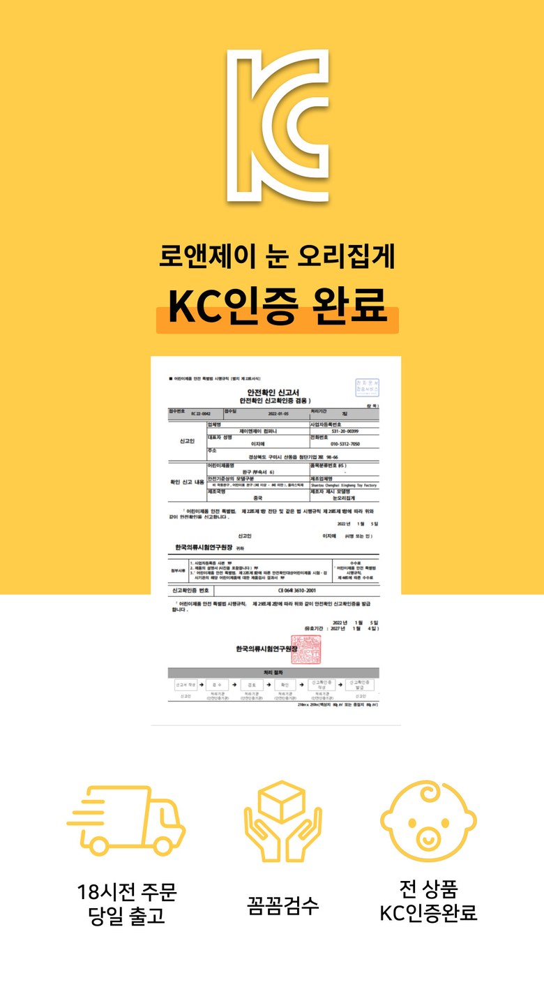 | KC 인증 필 유무 | 어린이제품안전특별법에 따른 KC인증 대상 |