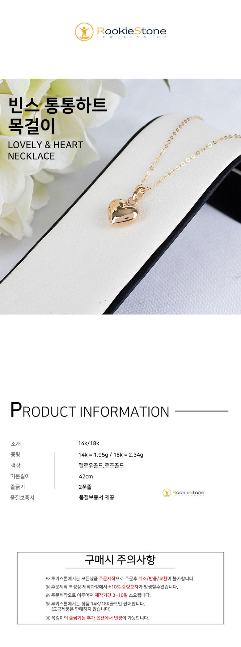 루키스톤 18k 빈스 통통 하트목걸이 18k목걸이