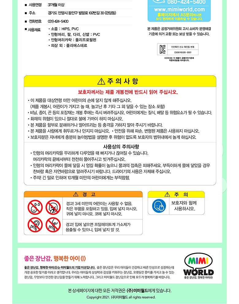 | 취급방법 및 취급시 주의사항, 안전표시 | 상품 상세페이지 참조 |