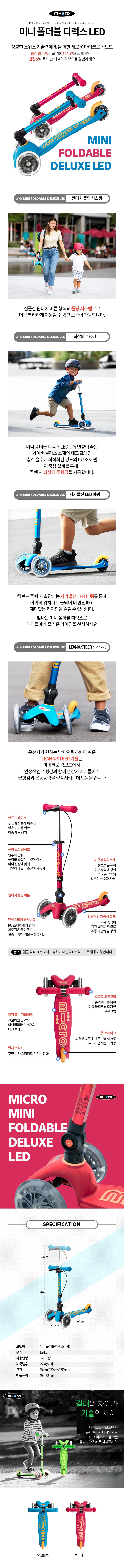 마이크로킥보드 미니 폴더블 디럭스 LED, 오션 블루