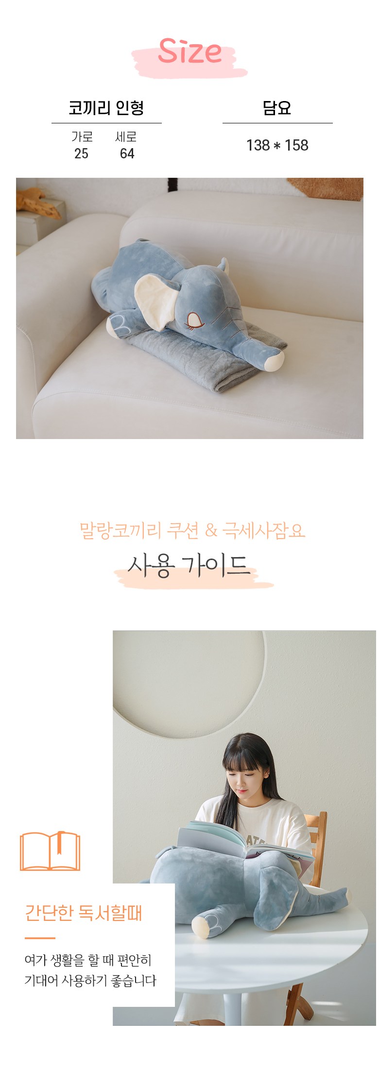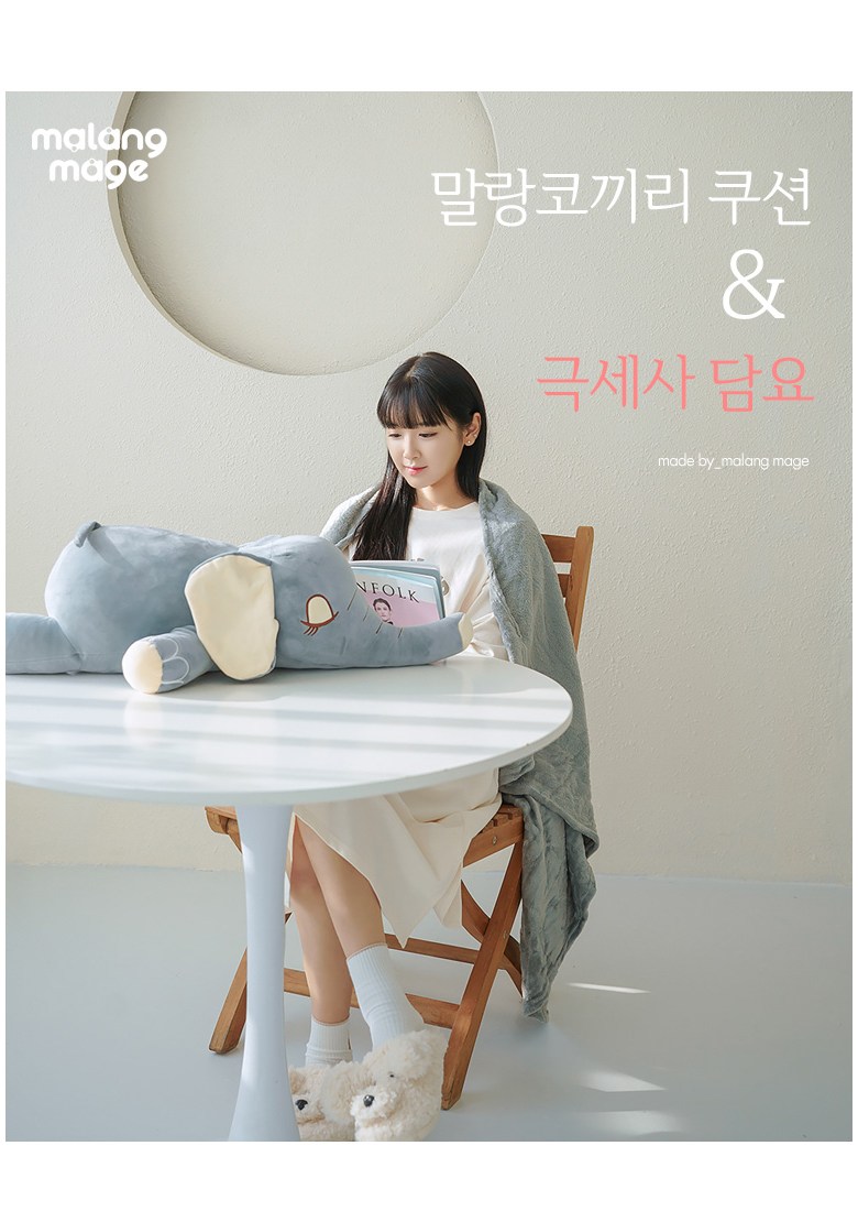 말랑마쥬 말랑코끼리 쿠션 극세사담요 세트, 코끼리+담요