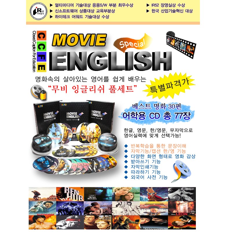| 제품 구성 | 무비잉글리쉬스페셜에디션영화 20편 AB set 영화 20편VCD 50장 |