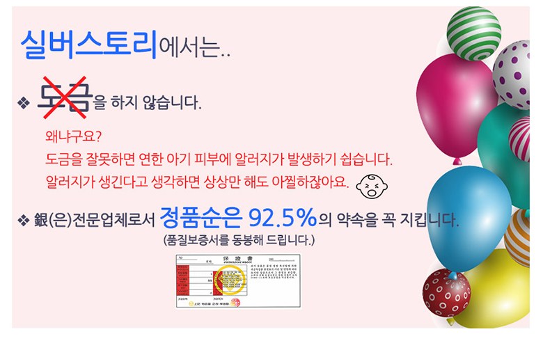 | 소재/순도/밴드재질 | 정품순은 92.5% |