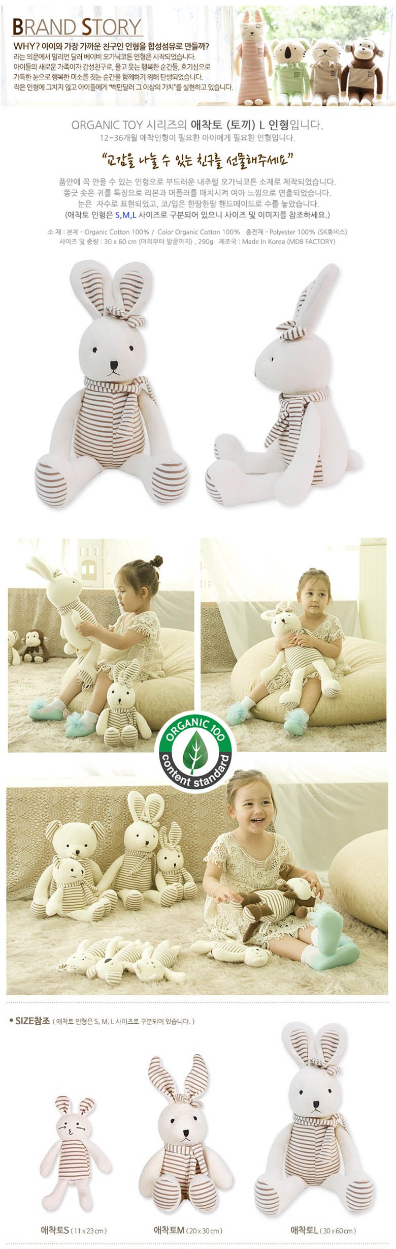 밀리언달러베이비 오가닉 애착토 인형 L, 혼합색상