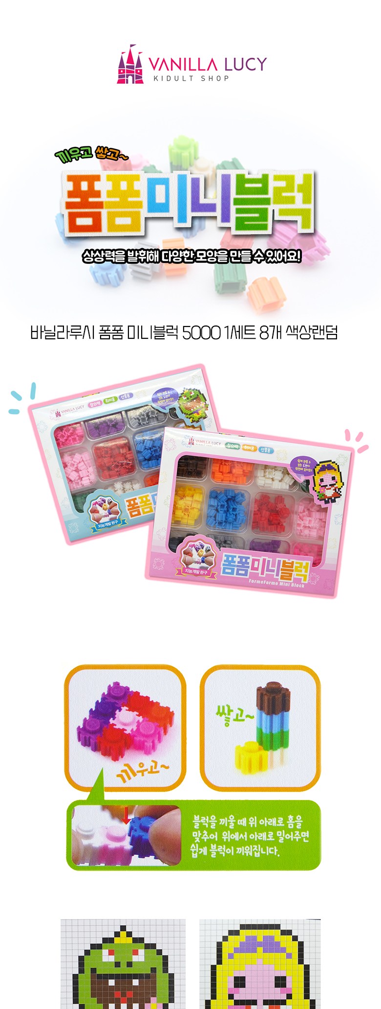 바닐라루시 폼폼 미니블럭 5000 8p, 랜덤발송