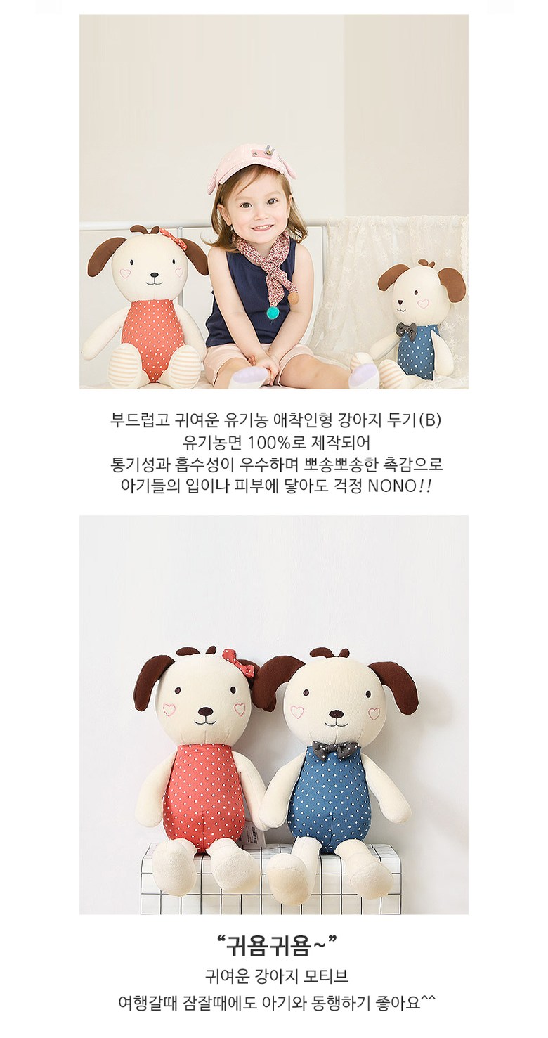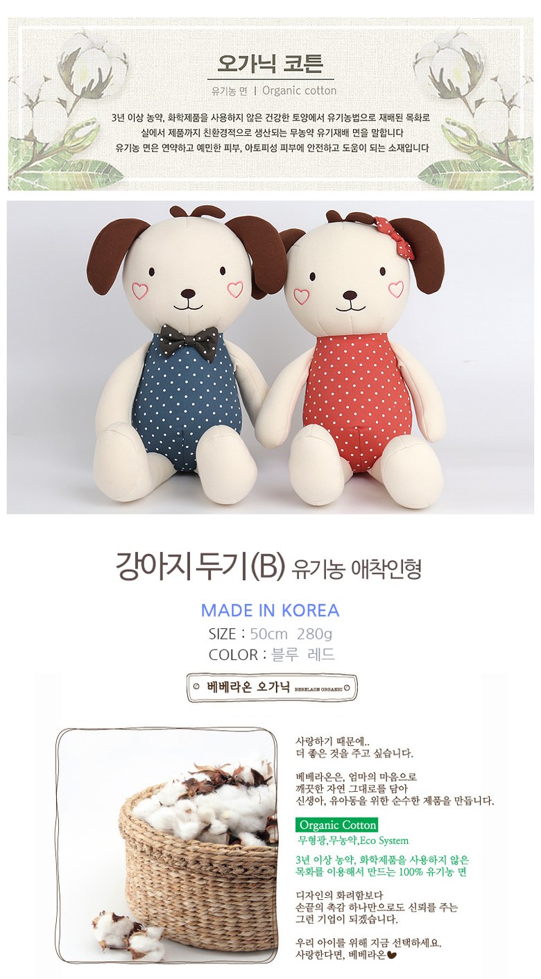 바이루체 유기농 애착인형 강아지두기B 유아 출산 선물 용품, 블루