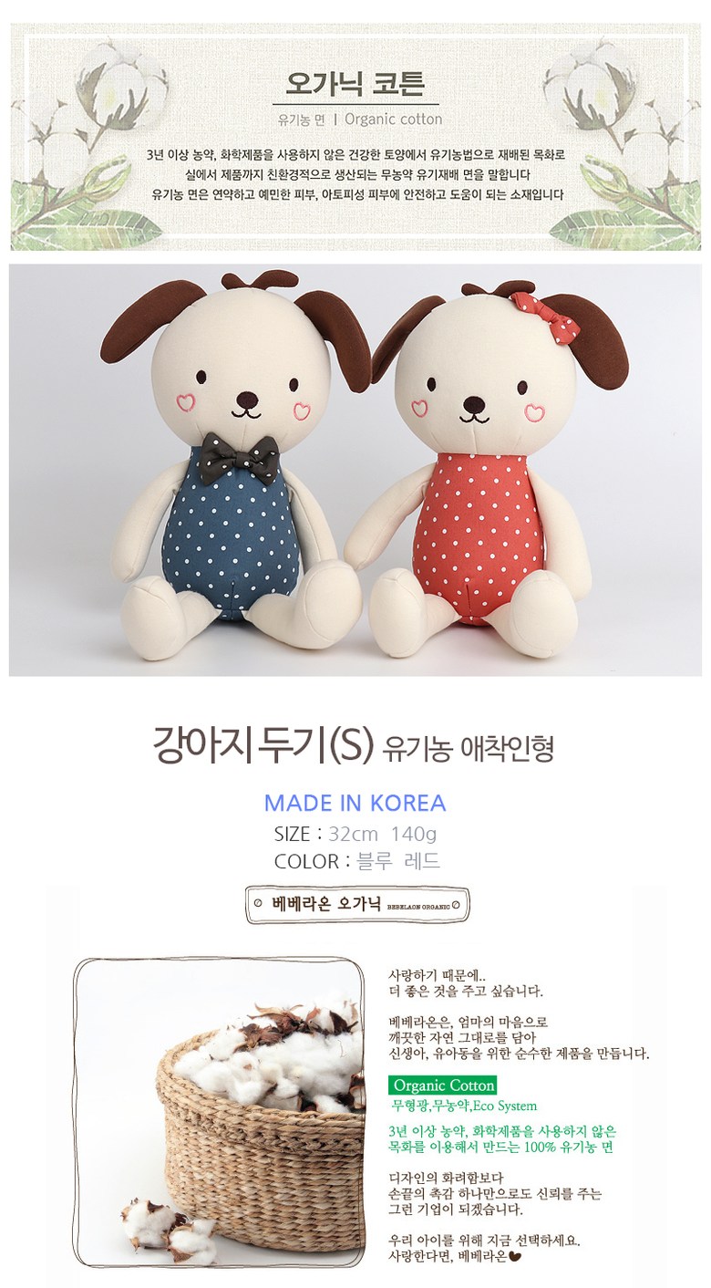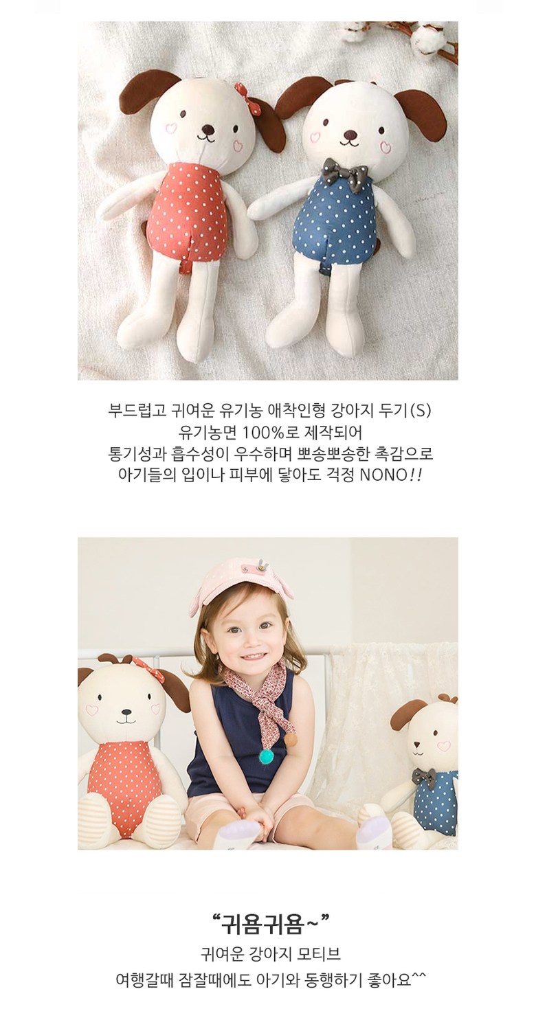 바이루체 유기농 애착인형 강아지두기S 유아 출산 선물 용품, 블루
