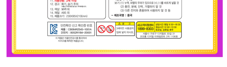 | 사용연령 또는 체중범위 | 상품 상세페이지 참조 |