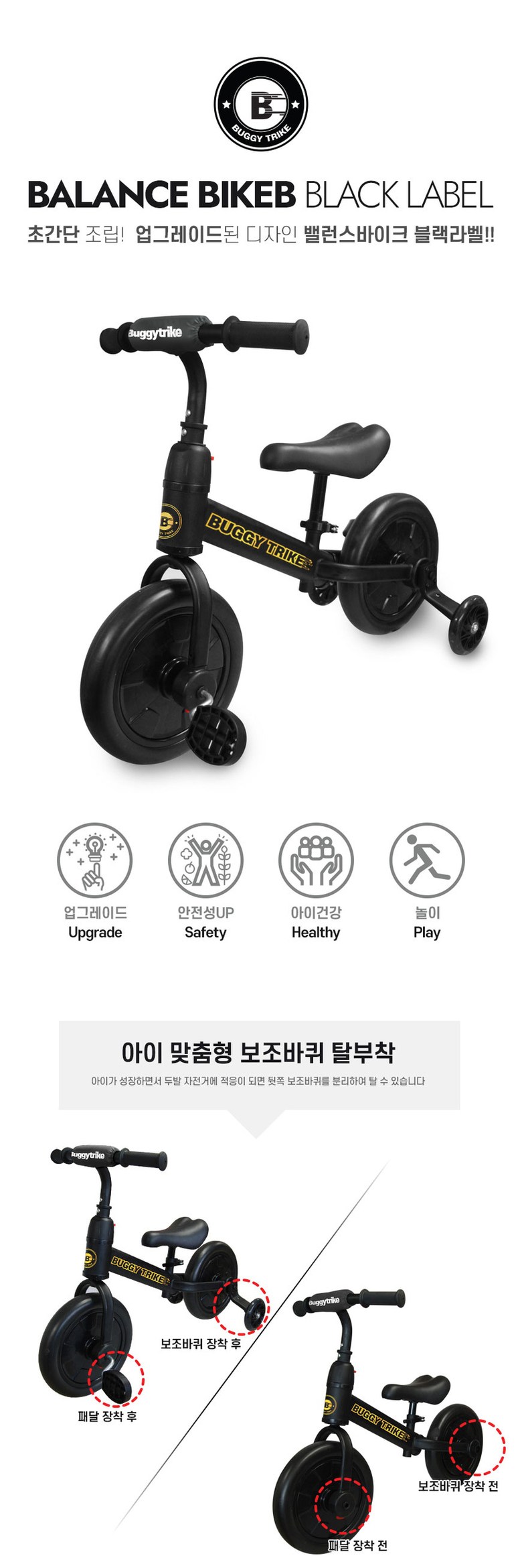 버기 밸런스 바이크 유아용 네발자전거, 블랙