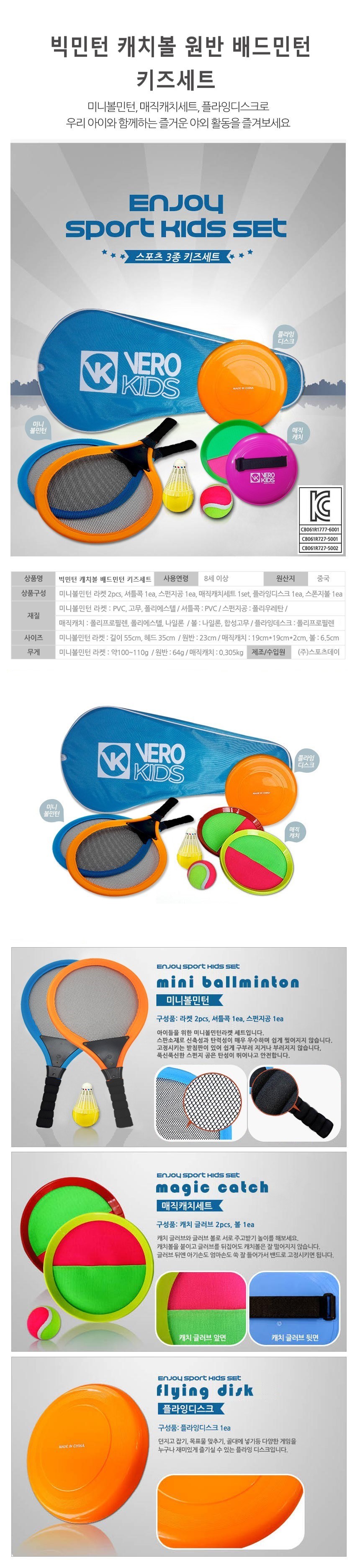 | 품명 및 모델명 | 베로키즈 박민턴 캐치볼 원반 배드민턴 키즈세트 |