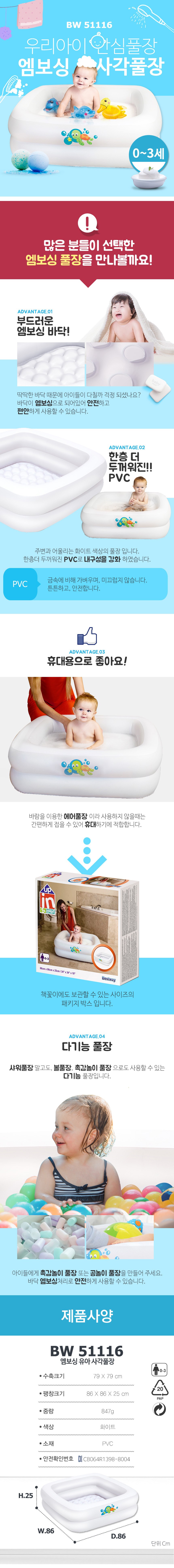 베스트웨이 엠보싱 유아 사각 욕조 풀장 BW 51116, 화이트