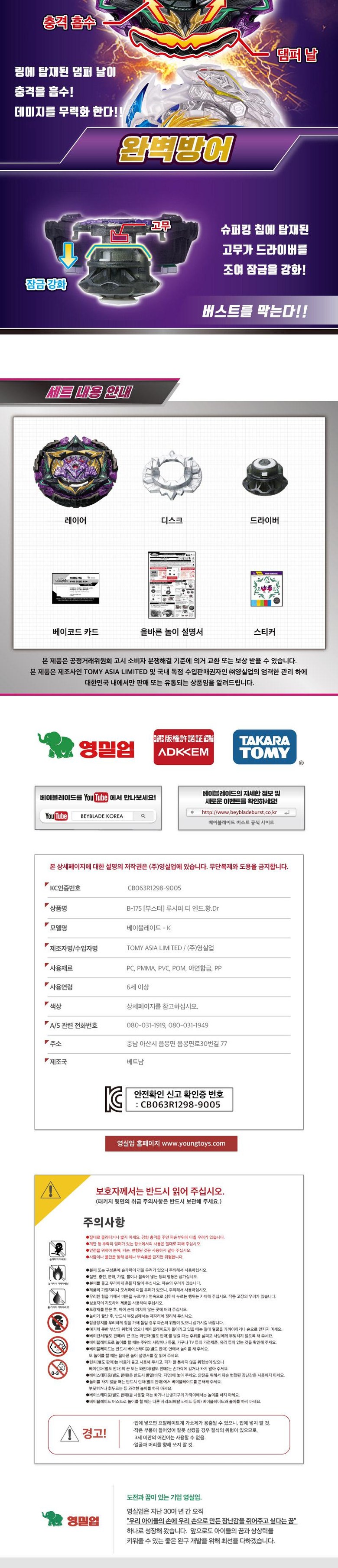 | 품명 및 모델명 | 베이블레이드 B-175 루시퍼디엔드.황 Dr |