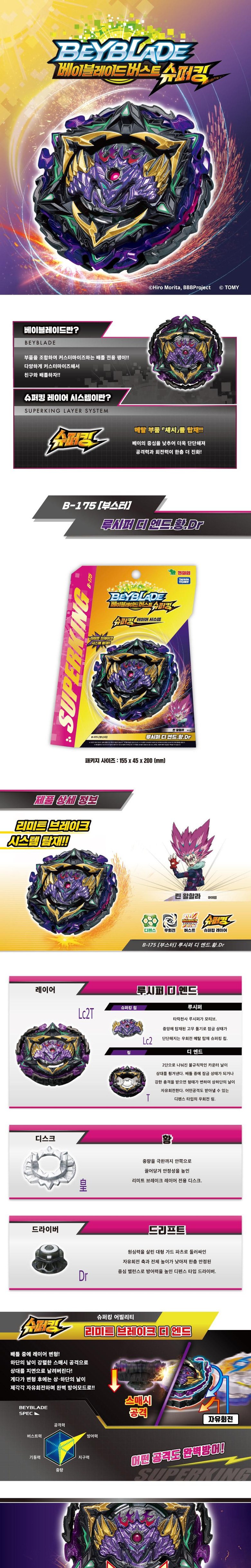 베이블레이드 슈퍼킹 배이 블래이드 부스터 루시퍼 디 엔드. 황.Dr B-175 배틀 팽이, (영실업) B-175 부스터 루시퍼 디 엔드