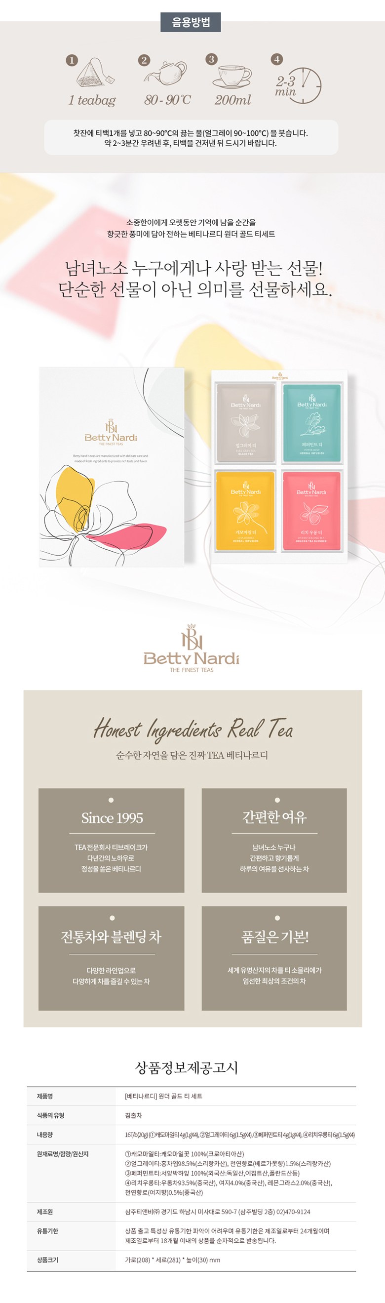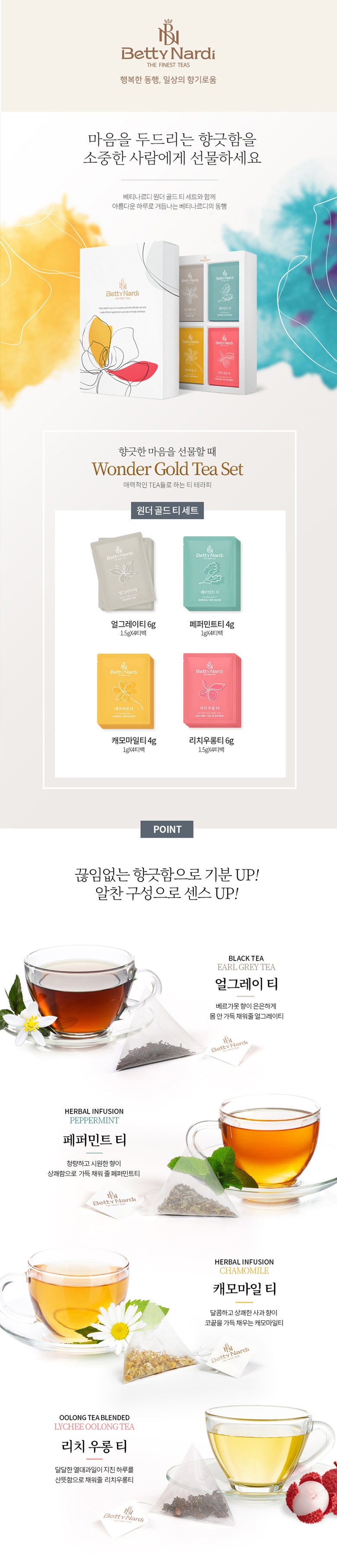 베티나르디 원더골드 티 4종 세트, 얼그레이 1.5 x 4p + 페퍼민트 1g x 4p + 캐모마일 1g x 4p + 리치우롱 1.5g x 4p, 1세트