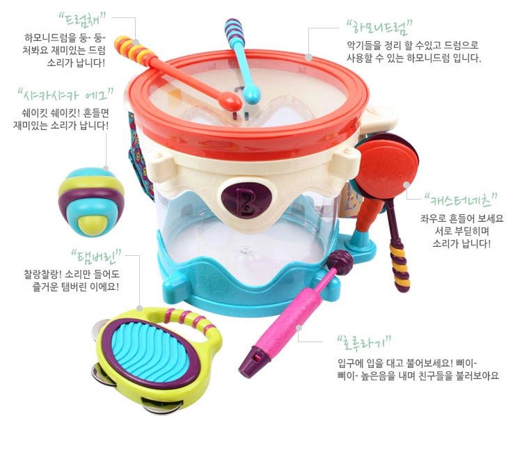 브랜드B 하모니 드럼 악기놀이 세트, 혼합 색상