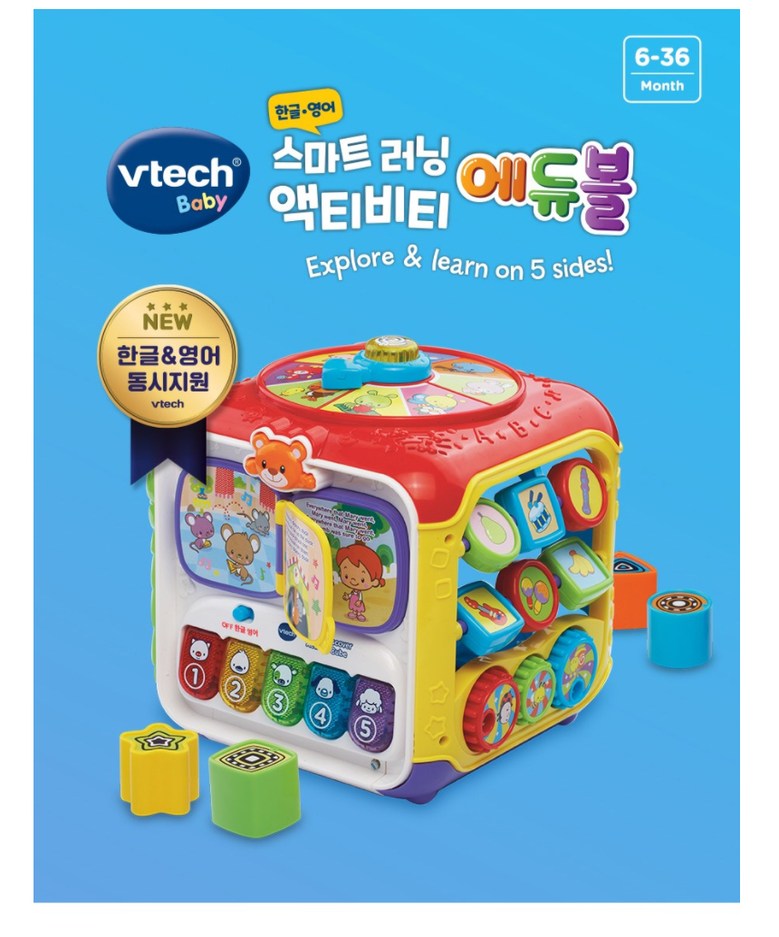 브이텍 스마트러닝 국민 에듀볼 영어 동시지원 멀티 학습기 돌아기장난감, 스마트러닝 액티비티 에듀볼 (한글영어지원)