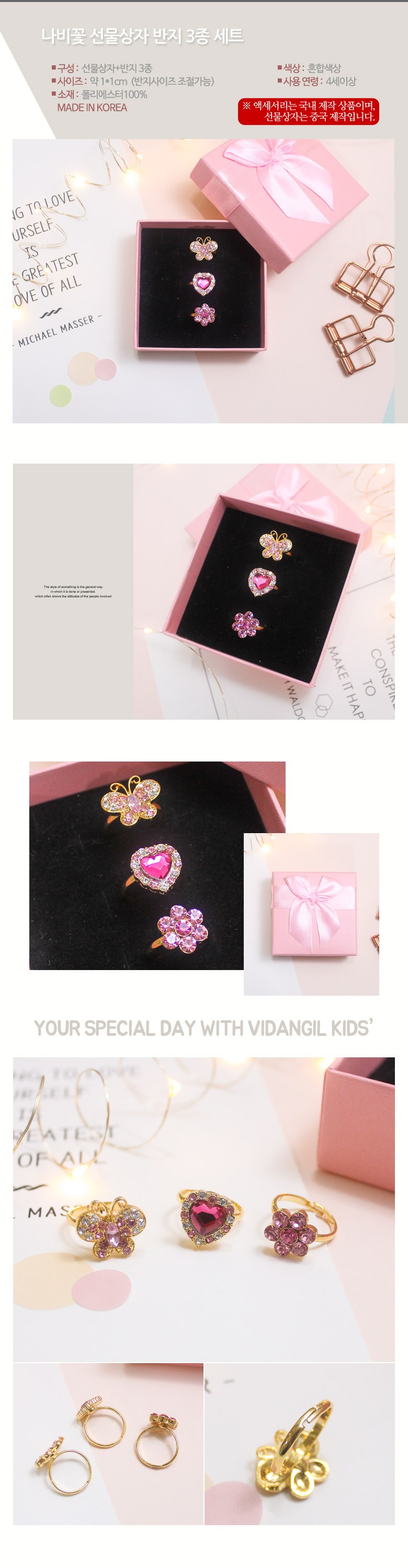 비단길 나비꽃 선물상자 반지 3종 세트