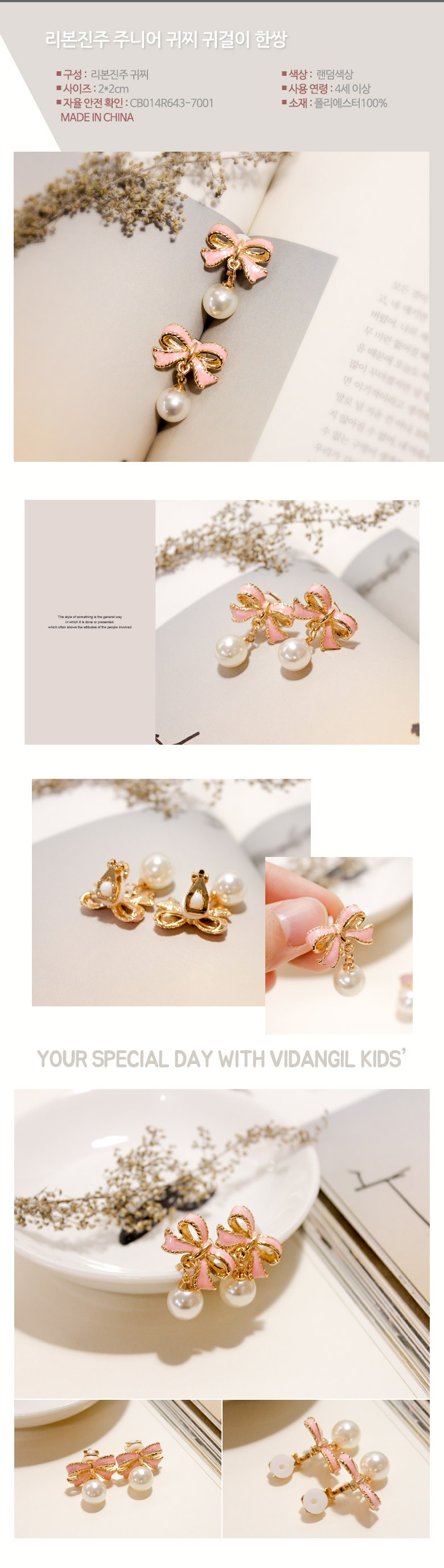 비단길 리본진주 주니어 귀찌 귀걸이 한쌍