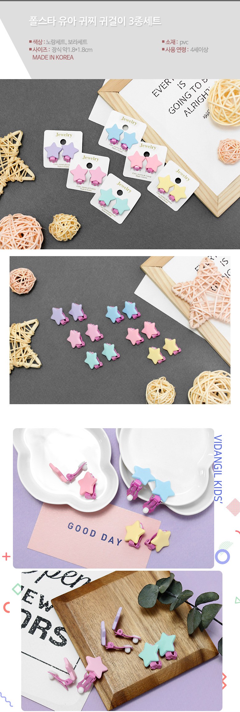 비단길 여아용 폴스타 귀찌 귀걸이 3종 세트