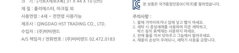 | KC 인증 필 유무 | 어린이제품안전특별법에 따른 KC인증 대상 |