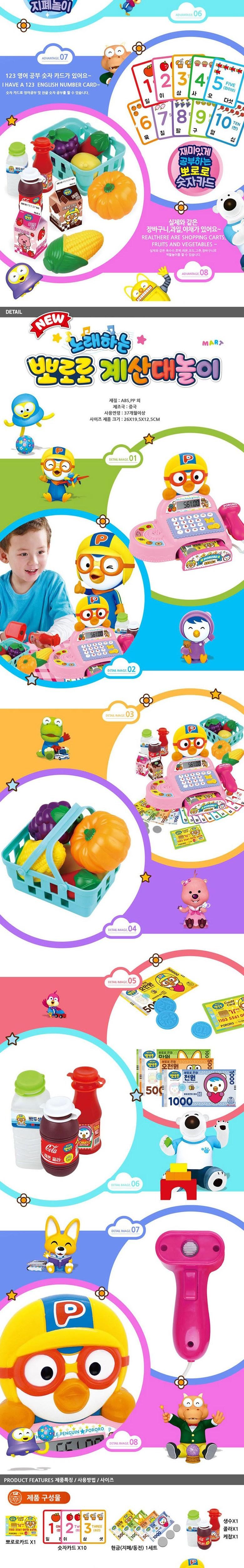 뽀로로 노래하는 계산대놀이 마트계산기 뽀로로자판기 편의점놀이 숫자카드공부 현금계산공부