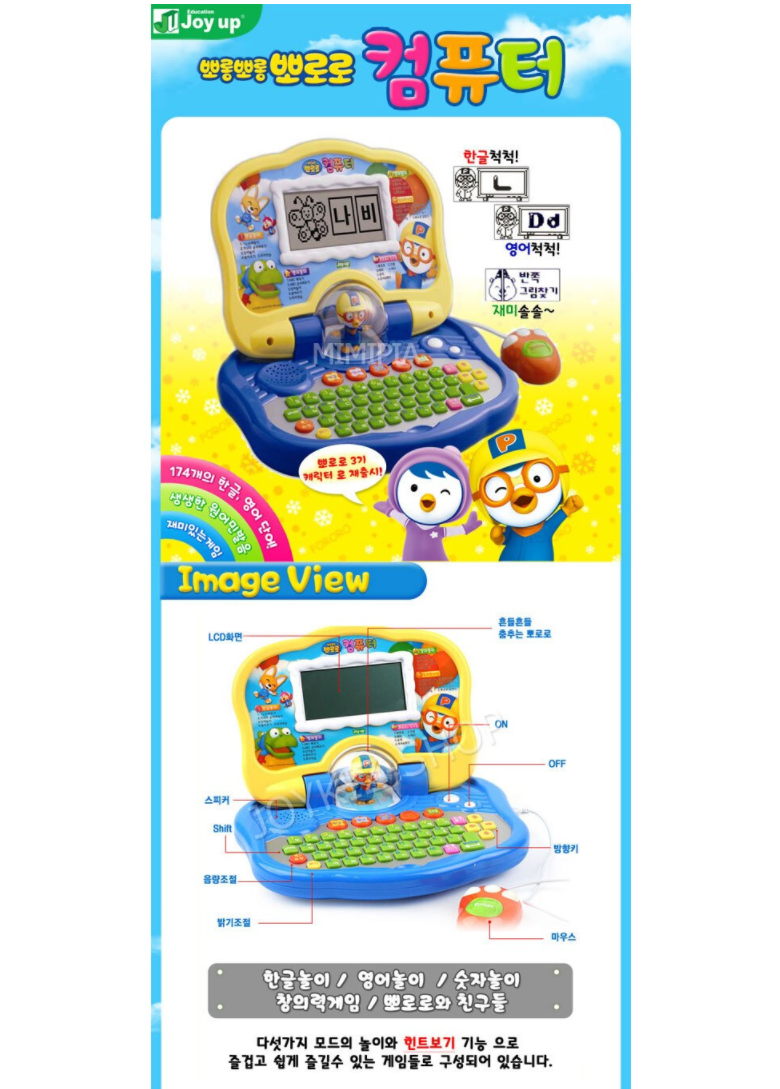 | 품명 및 모델명 | 뽀로로 컴퓨터 노트북 (2종) 유아 초등 프로그램 언어 놀이 교육 컴퓨터 |