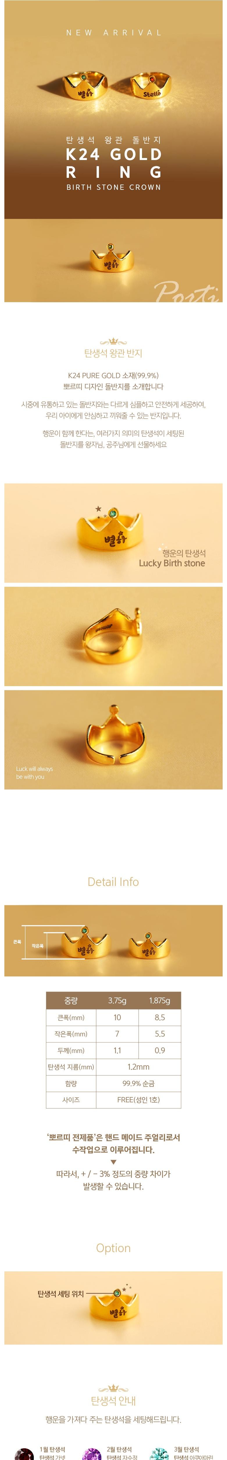 [뽀르띠] 순금 24K 탄생석 왕관 반지 1.875g 3.75g