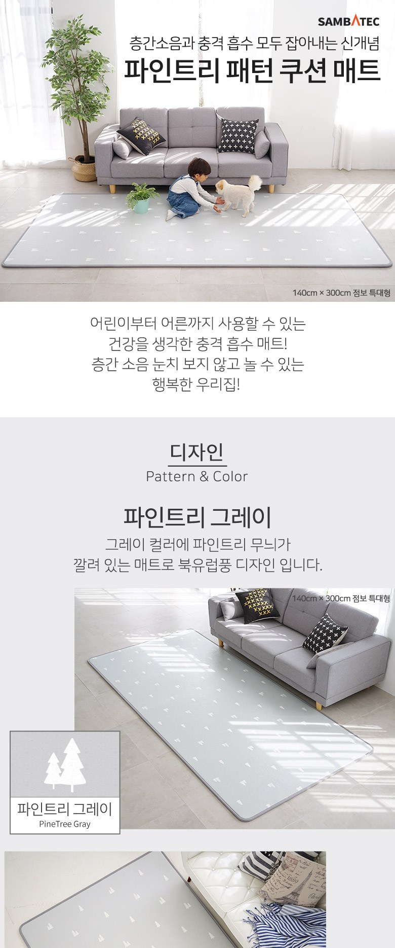 삼바텍 PVC 퓨어 놀이방매트, 파인트리 그레이