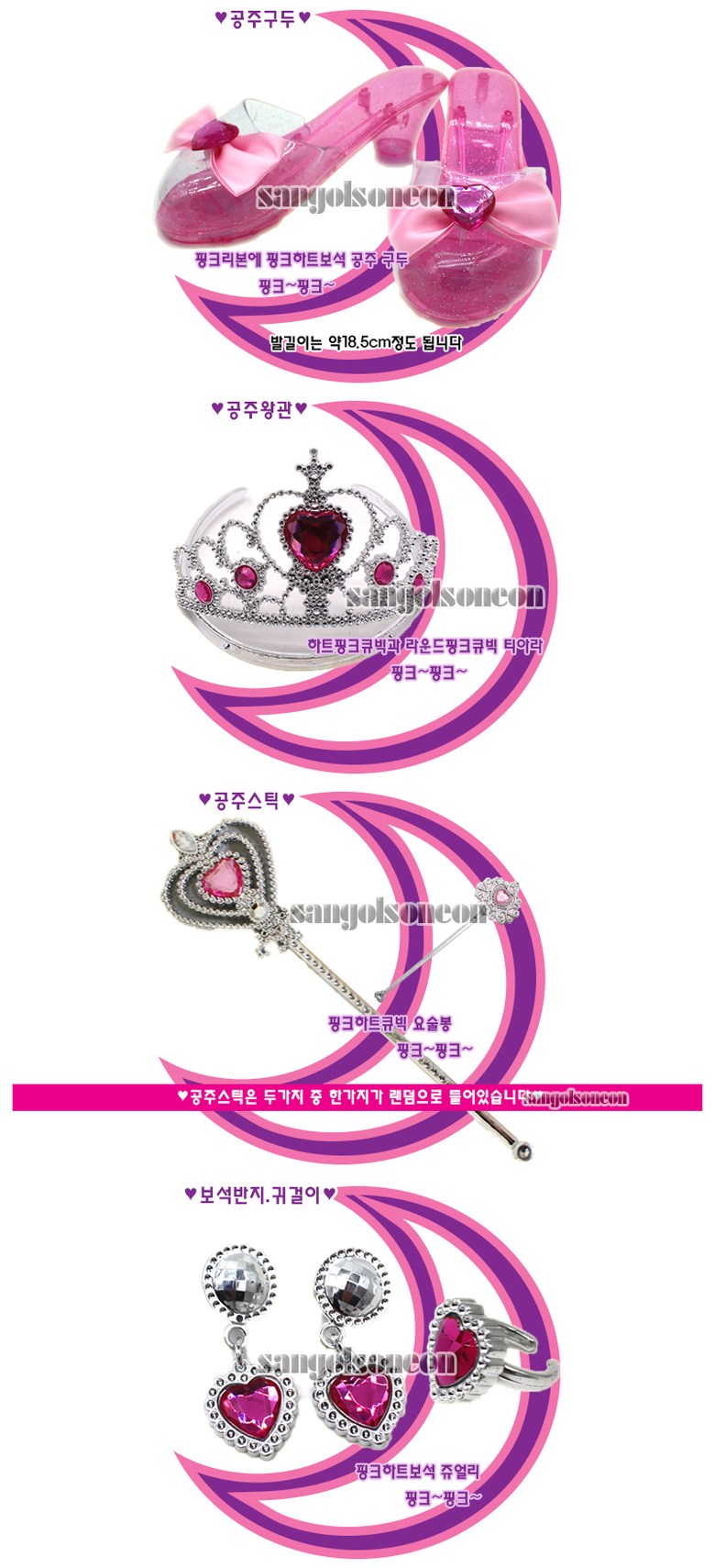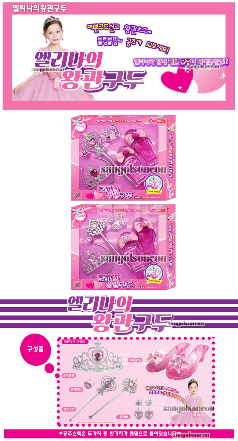 [세주](산골소년)엘리나의 왕관 구두 요술봉 반지 귀걸이 패션 공주 놀이