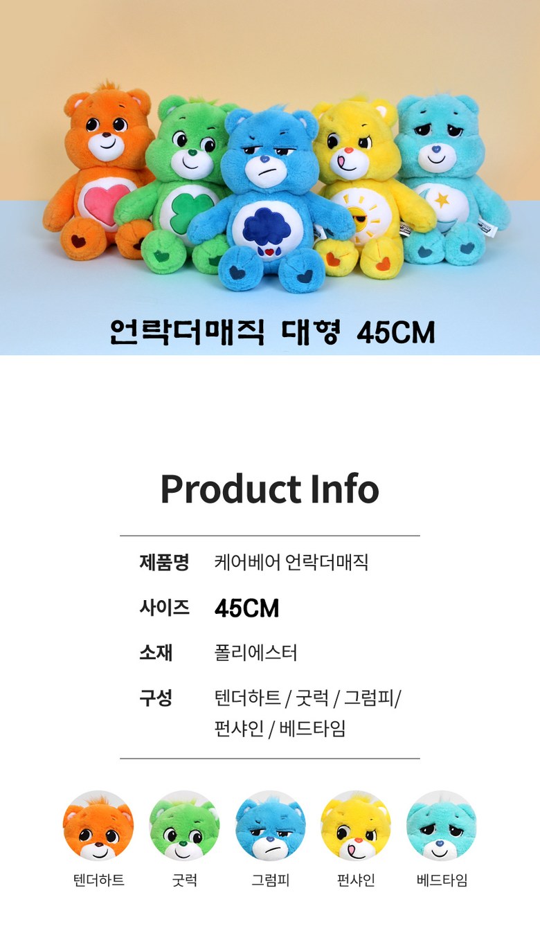 센스샵 케어베어 언락더매직 텐더하트 굿럭 그럼피 펀샤인 베드타임 45CM 대형인형, 03.그럼피(파랑색)45CM
