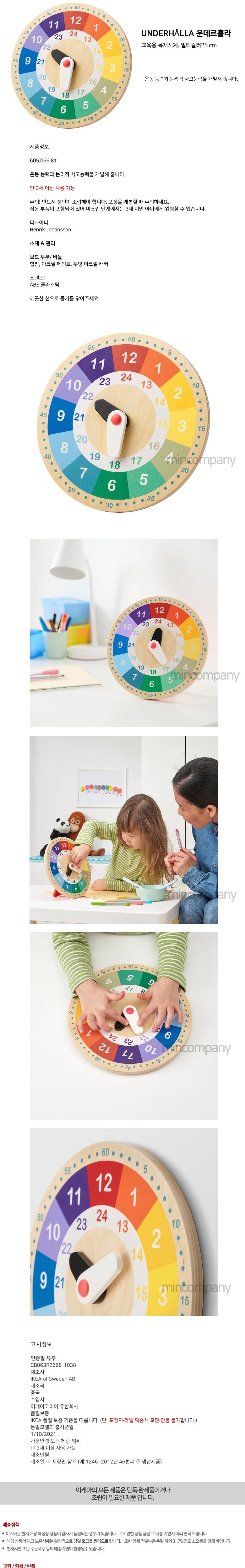 수리셈/어린이 시계공부/시간공부/교육용 시계 공부/이케아 시계/유아 어린이 시계공부 UNDERHALLA 운데르홀라 교육용 목재시계 멀티컬러 25cm