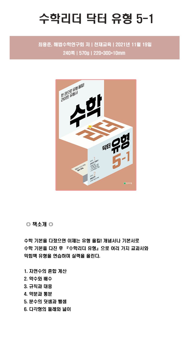 | 품명 및 모델명 | [천재교육(학원)] 수학리더 닥터 유형 5-1 (2022년) |