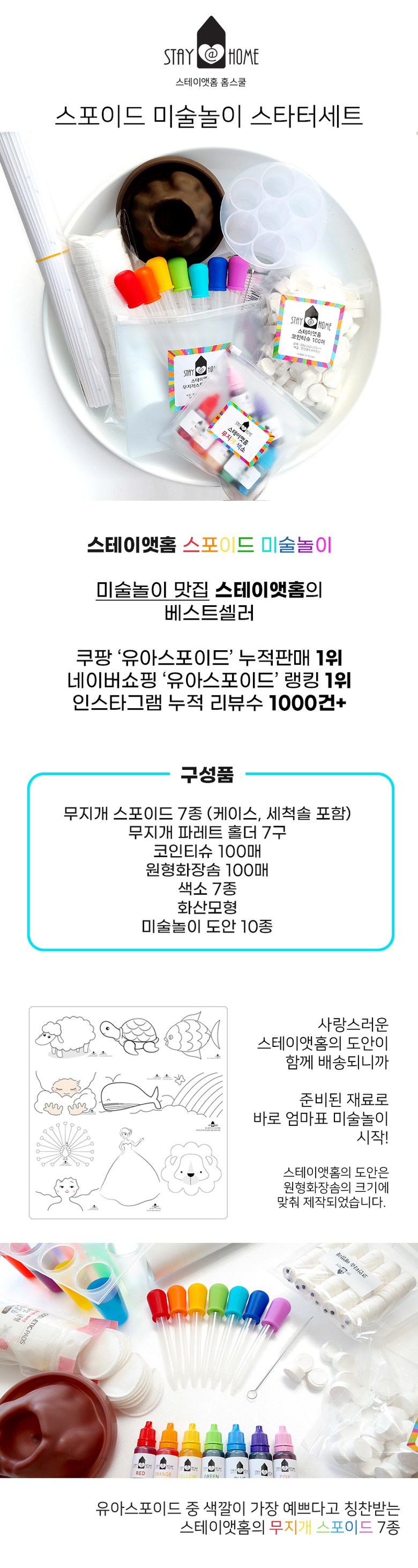 스테이앳홈 유아 스포이드 미술놀이 스타터 세트 풀패키지(새해맞이 도안 이벤트+놀이트레이 포함)