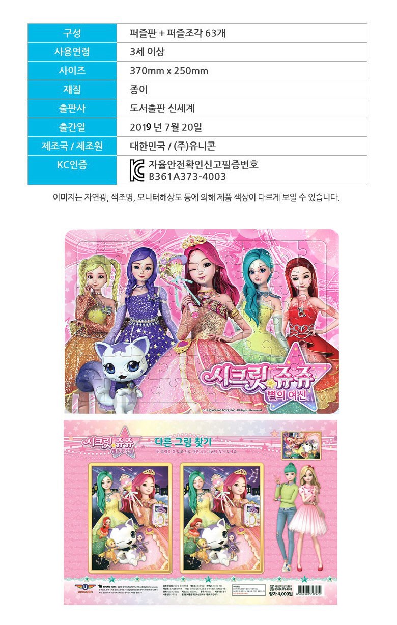 | 품명 및 모델명 | NEW 치링치링 시크릿쥬쥬 3 판퍼즐 63조각 |