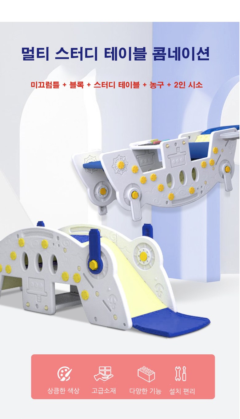 실내용 아기 플라스틱 미끄럼틀 스터디 테이블겸 시소, 핑크