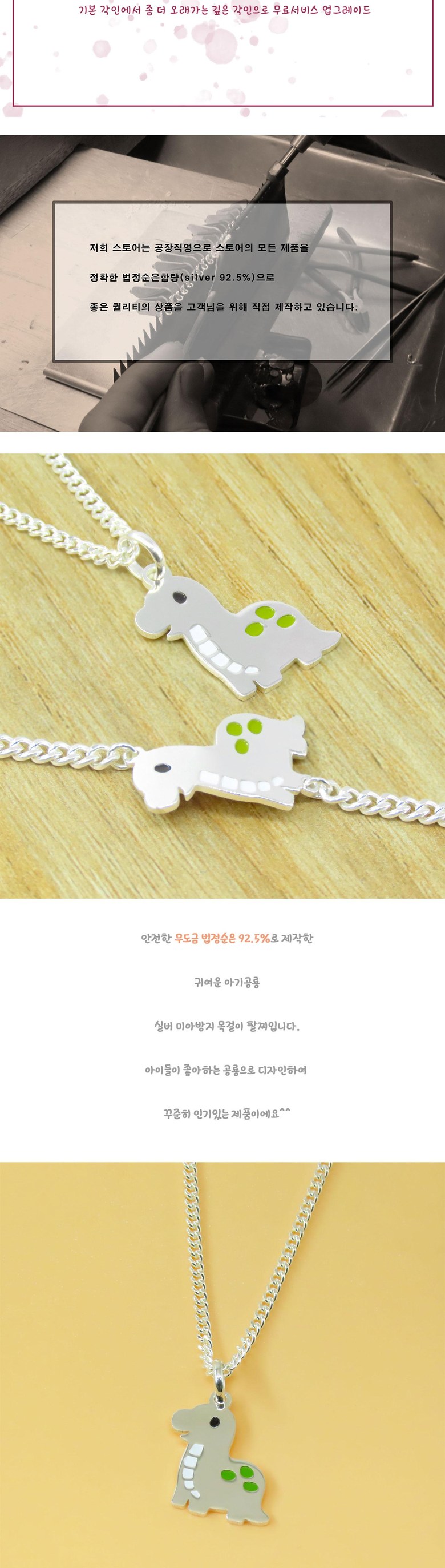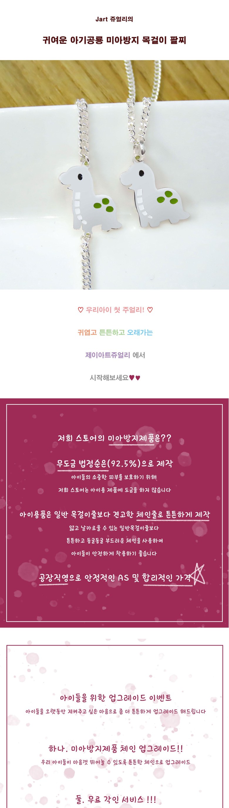 | 품명 및 모델명 | 실버 귀여운 아기공룡 미아방지팔찌 미아방지목걸이 미아방지세트 돌선물 키즈목걸이 키즈팔찌 두돌선물 여아선물 남아선물 주니어목걸이 아이목걸이 어린이팔찌 어린이목걸이 |