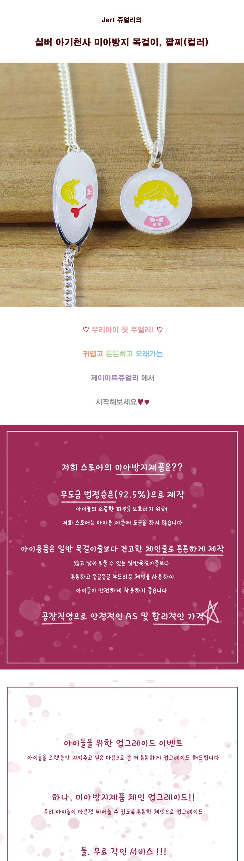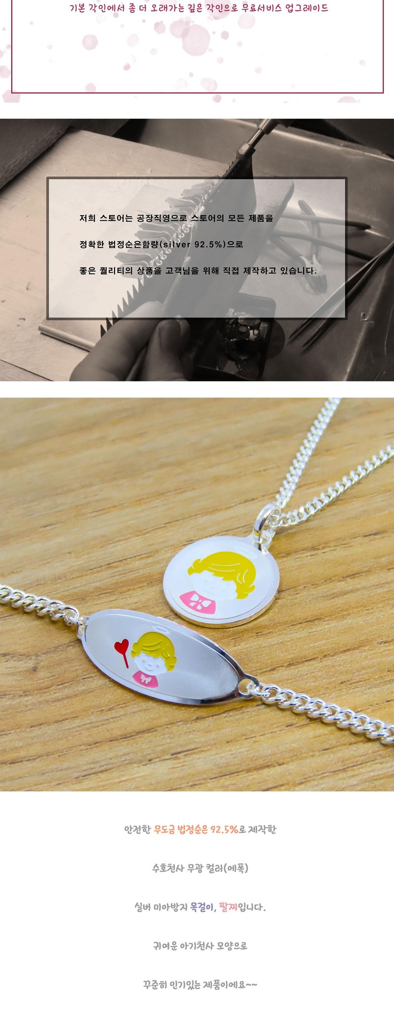| 품명 및 모델명 | 실버 무광 아기천사 미아방지 목걸이, 팔찌 (컬러에폭) |