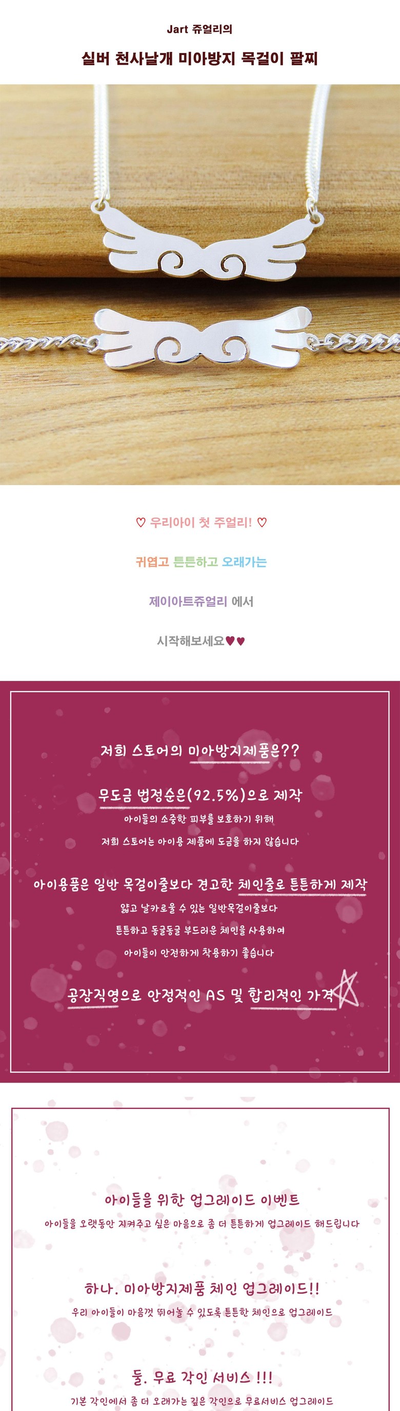 | 품명 및 모델명 | 실버 천사날개 미아방지팔찌 미아방지목걸이 미아방지세트 돌선물 키즈목걸이 키즈팔찌 두돌선물 여아선물 남아선물 주니어목걸이 아이목걸이 어린이팔찌 어린이목걸이 마우스목걸이 |
