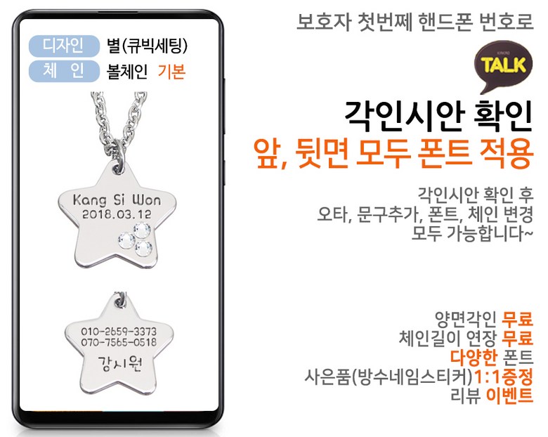 써지컬스틸 미아방지목걸이 양면각인 큐빅세팅, 양면+별(큐빅세팅), 커브, 5세이하:33+여유3